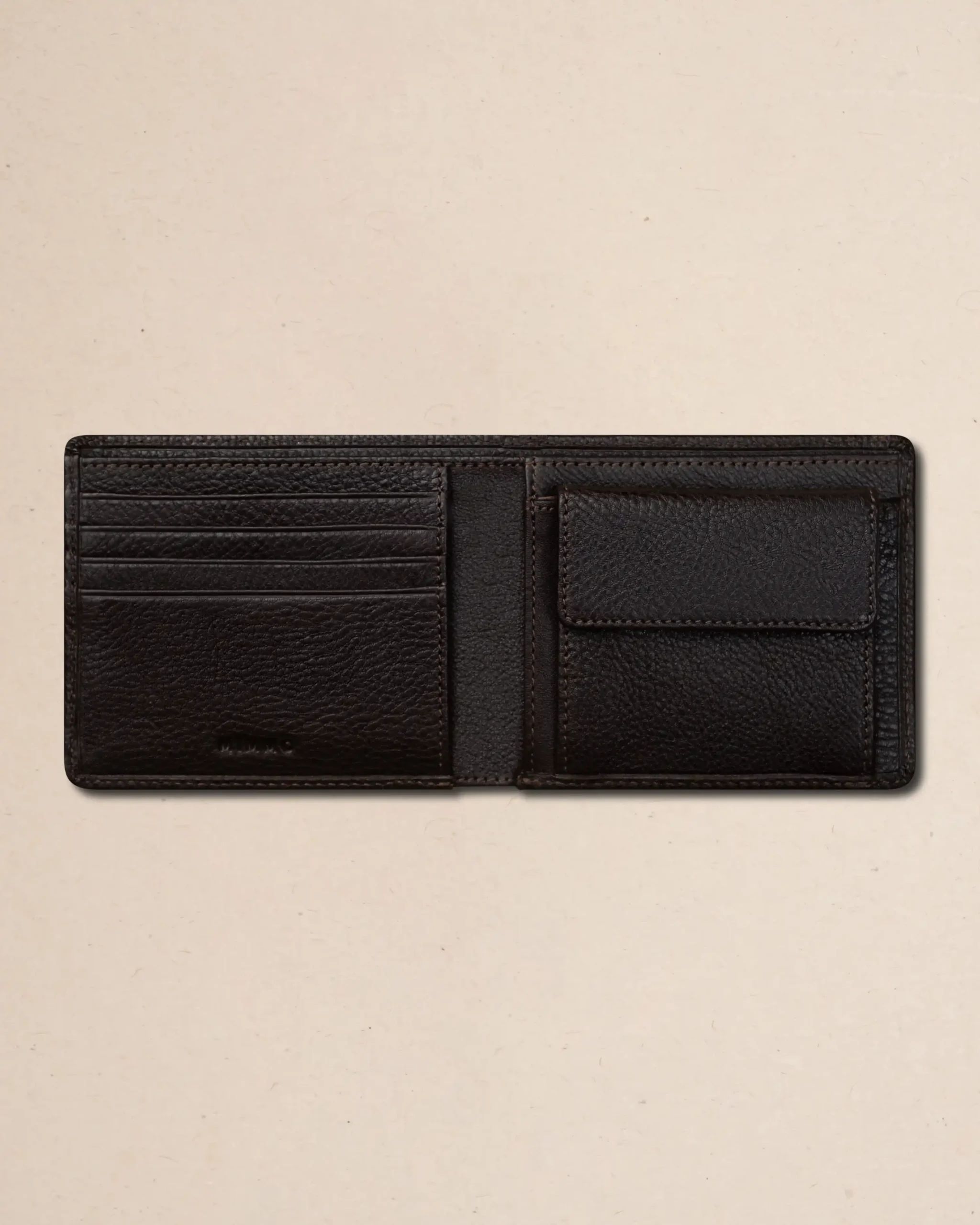 The Bifold Coin Pocket Wallet LIAN is a refined essential for modern minimalists. Handcrafted from 100% full-grain premium leather with a natural milling texture, it offers lasting elegance and ages beautifully over time. Precision hand-cut leather and strong machine stitching ensure durability and everyday reliability. Each wallet develops a unique patina, making every piece uniquely yours.